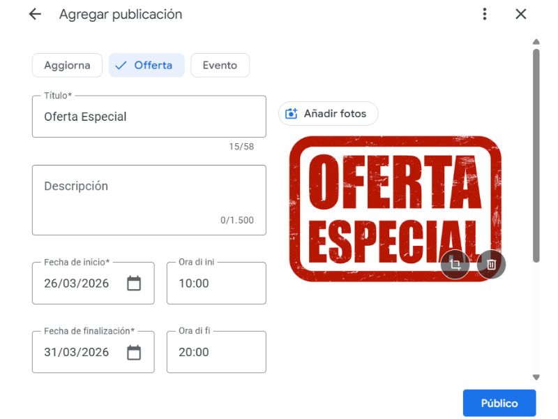 Cómo añadir las ofertas especiales de tu negocio